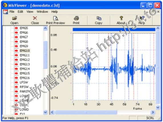 MLSviewer是一款支援C3D格式文件的查看器,可同時顯示相關參數,也可以通過計