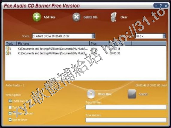 Fox Audio CD Burner 讓你非常容易的將已有的 MP3 或者 WAV 文件快速創建成音樂 CD,