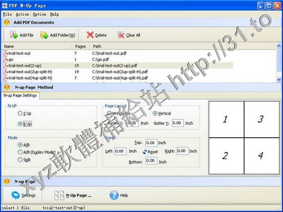 A-PDF N-up Page是一款簡單快速的程式,它可以讓你批量創建N-開(二開或四開)PDF文